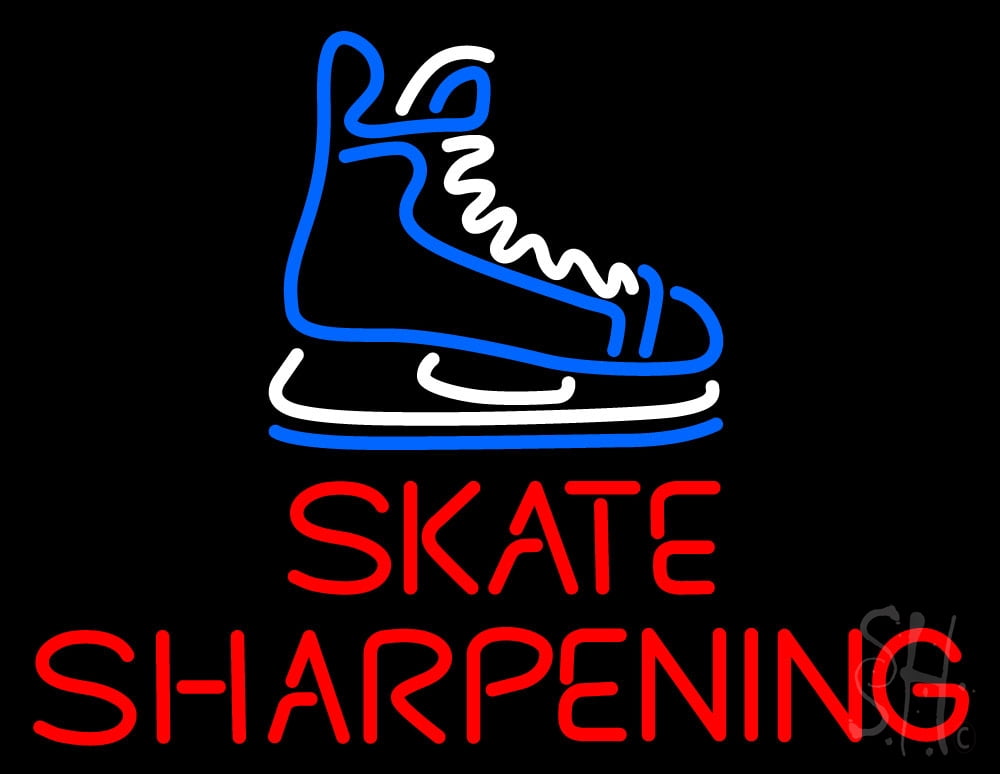 Skate Sharpening Led Neon Sign 24 Tall X 31 Wide Inches Black Square Cut Acrylic Backing With Dimmer Premium Built Indoor Sign For Storefront Store Interior School College Sports Complex
